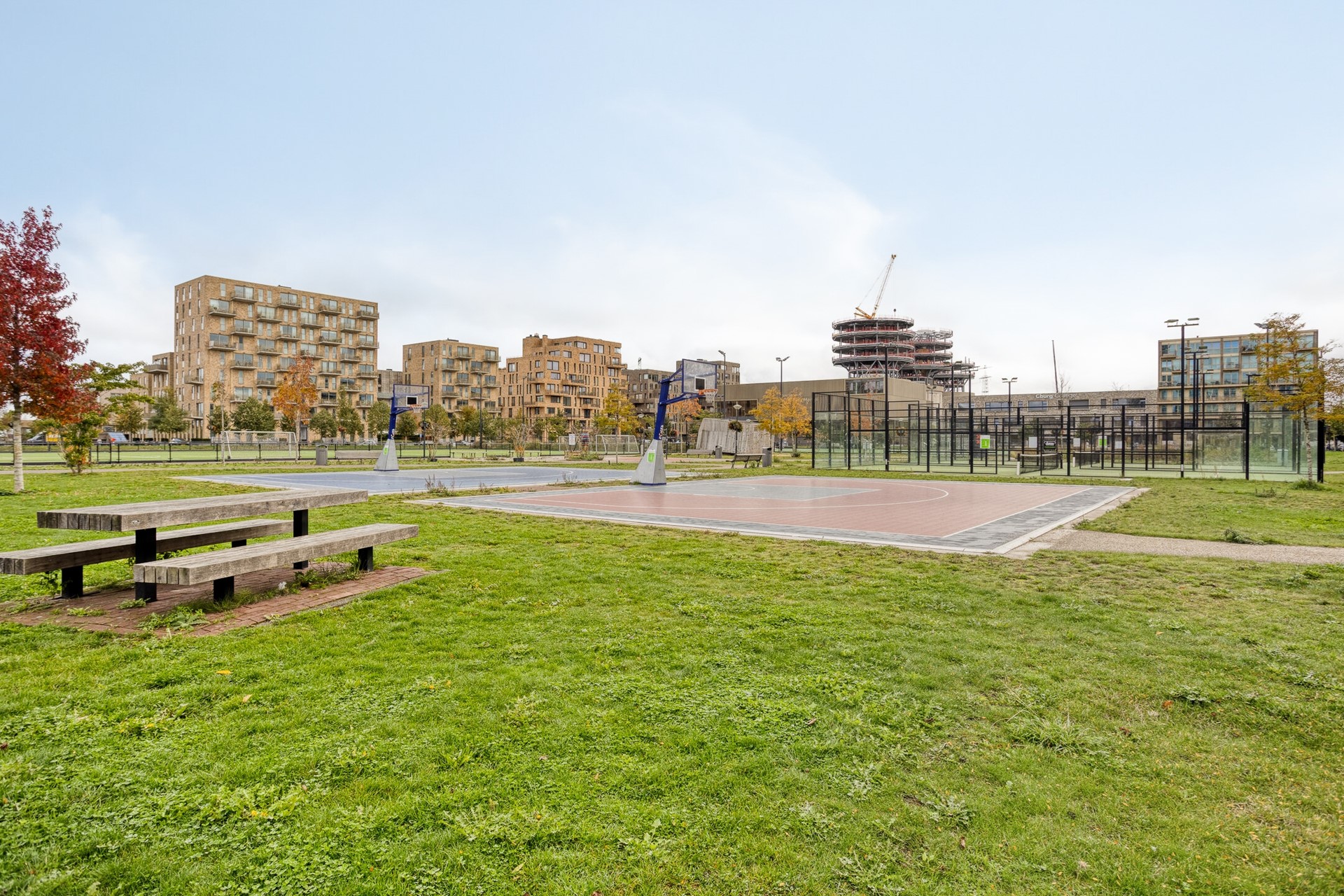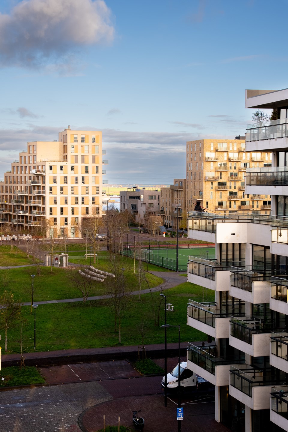 The apartment lies within the A10 ring road, in the green and vibrant Sportheldenbuurt of Amsterdam East, part of Zeeburgereiland. It is known for its Urban Sport Zone, which includes the largest outdoor skate park in the Netherlands, padel courts, running tracks, basketball and football fields, and multiple playgrounds.