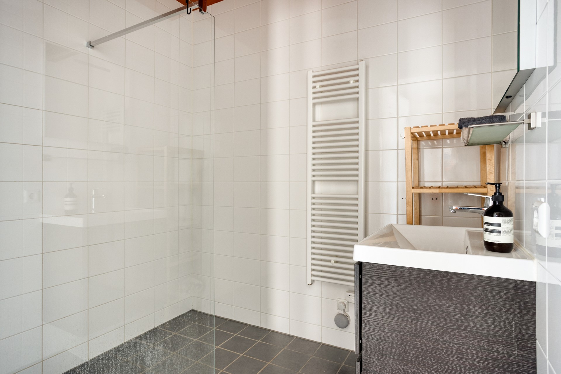 This corner apartment offers complete privacy and abundant natural light thanks to its floor-to-ceiling windows. The floating oak parquet flooring and neutral painted walls create a warm, modern atmosphere. The built-in wardrobe at the entrance offers enough storage and ensures minimalistic design. The living room leads to the kitchen and a sunny south-facing balcony (8m2) with no upstairs neighbors. A perfect spot to relax in the summer!