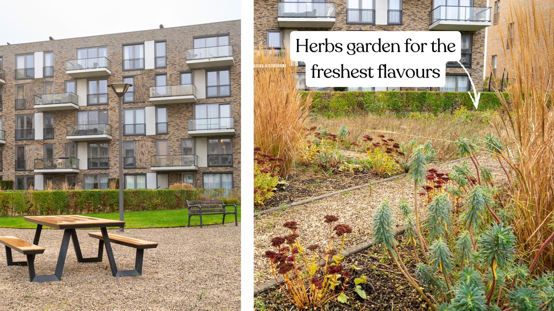 The price incl. a private parking space and a storage unit in the basement. All residents have access to BringMe delivery boxes and communal garden with grills, benches and herbs to share.