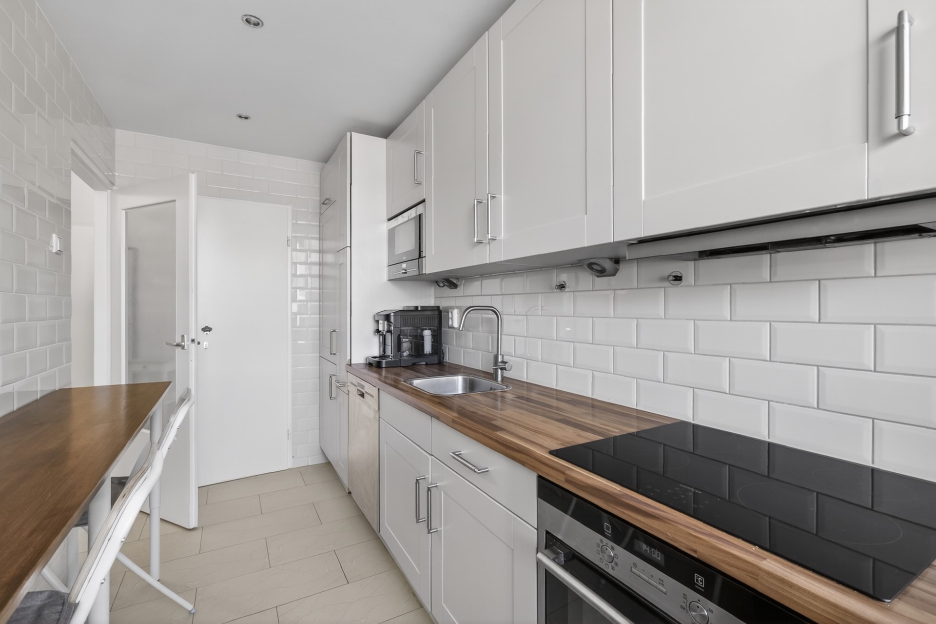The apartment has three bedrooms / work / hobby rooms, located at both the front and rear, providing optimal privacy and flexibility—ideal as a home office, guest room, or children’s room. The closed kitchen is modern and equipped with various built-in appliances. The bathroom was fully renovated in 2025 and includes a walk-in shower and a vanity unit. The separate toilet is located next to the bathroom.