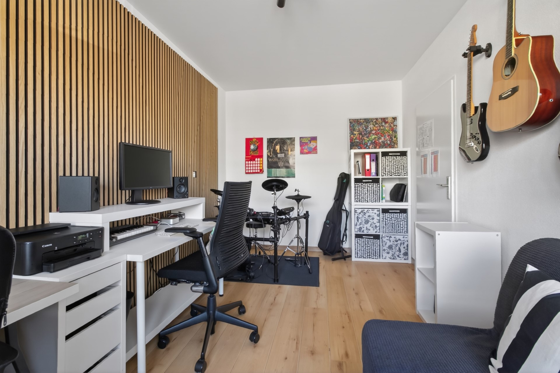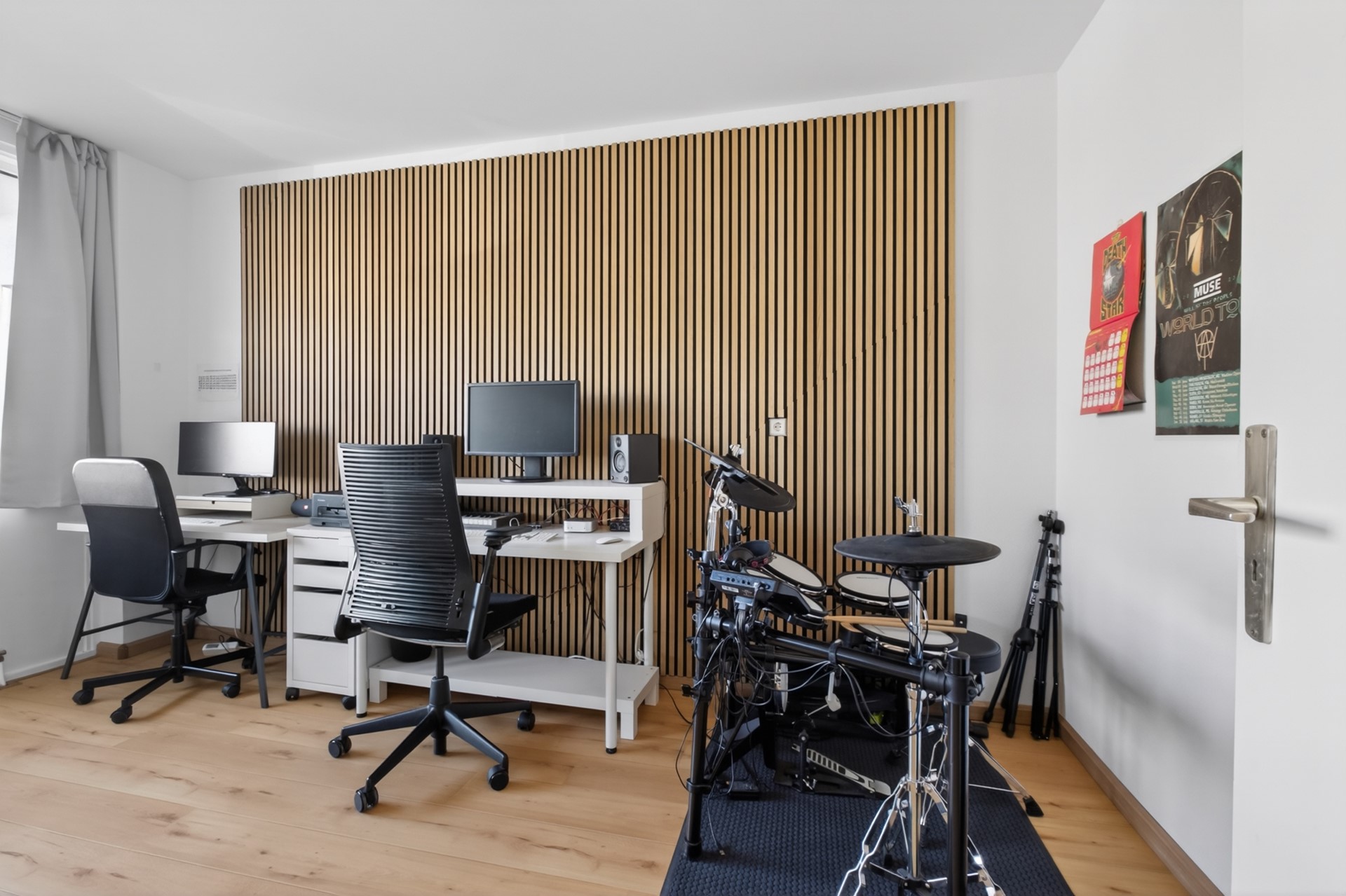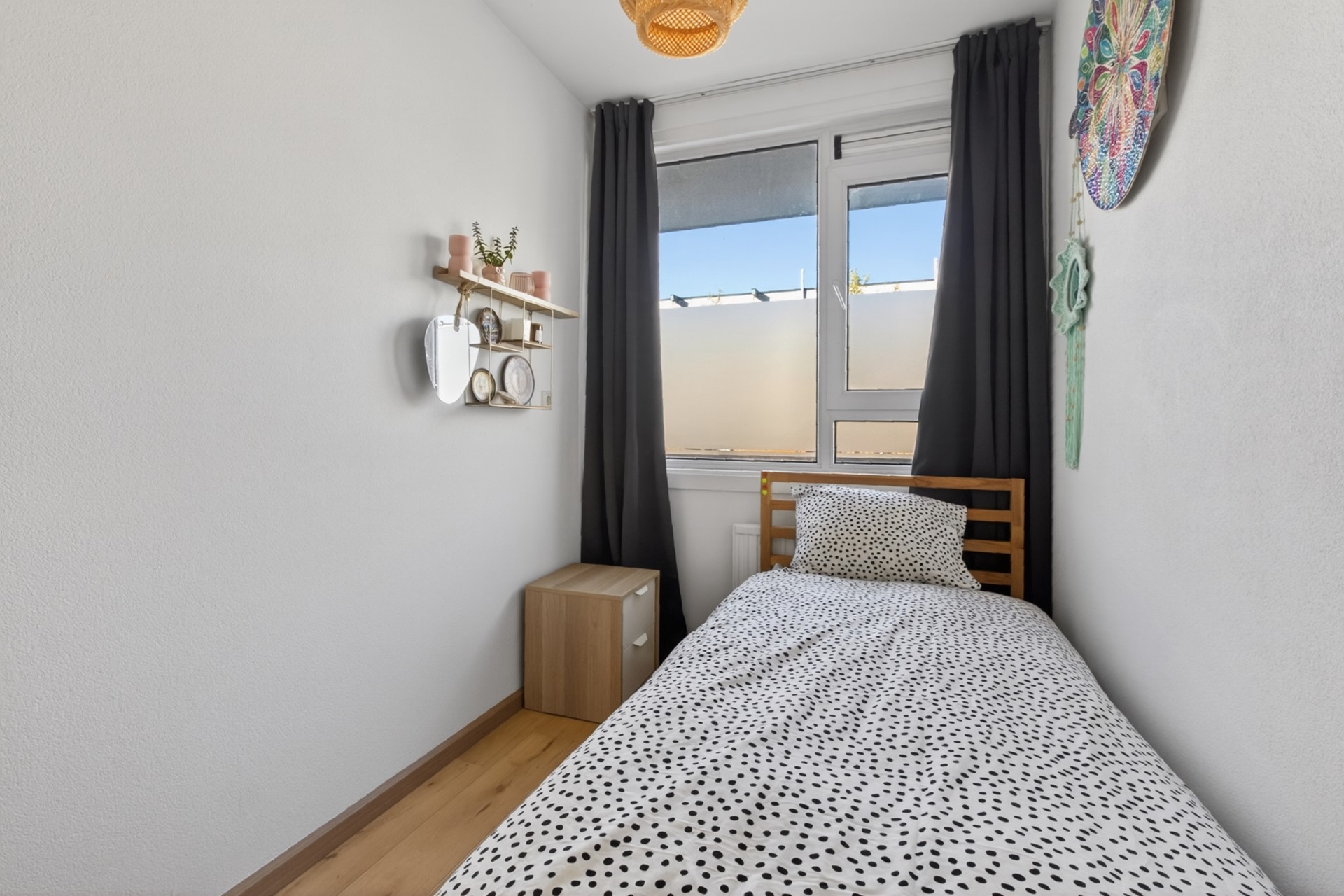De woning beschikt over drie slaap-/werk-/hobbykamers, verdeeld over de voor- en achterzijde. Dit zorgt voor optimale privacy en flexibiliteit in gebruik – ideaal als thuiskantoor, logeerkamer of kinderkamer. De gesloten keuken is modern en voorzien van diverse inbouwapparatuur. De badkamer is in 2025 volledig gerenoveerd en uitgerust met een inloopdouche en een wastafelmeubel. Het separate toilet bevindt zich naast de badkamer.