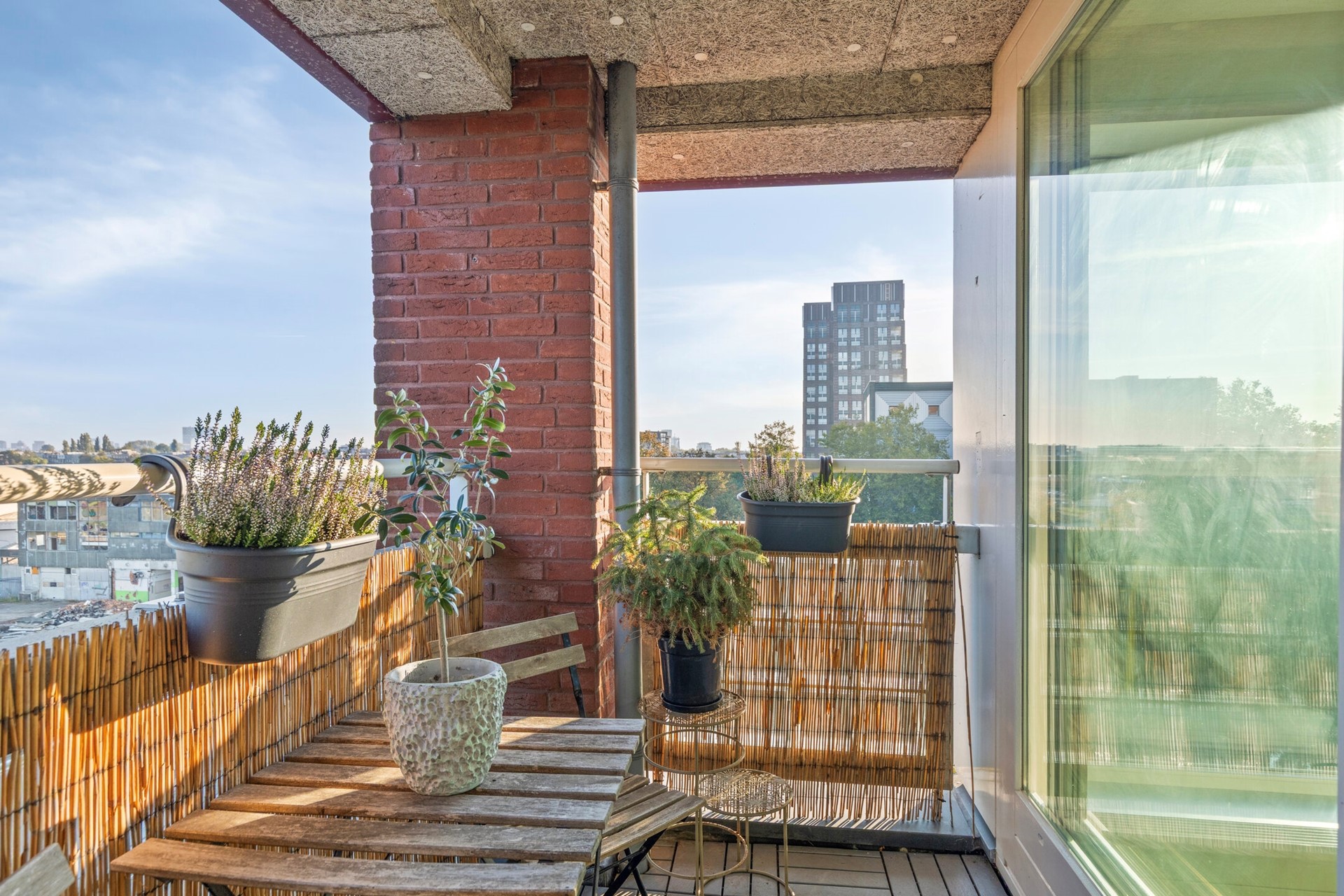 • 2 balkons van samen ruim 8 m² op het noordoosten en noordwesten met grandioos groen, vrij en weids uitzicht;