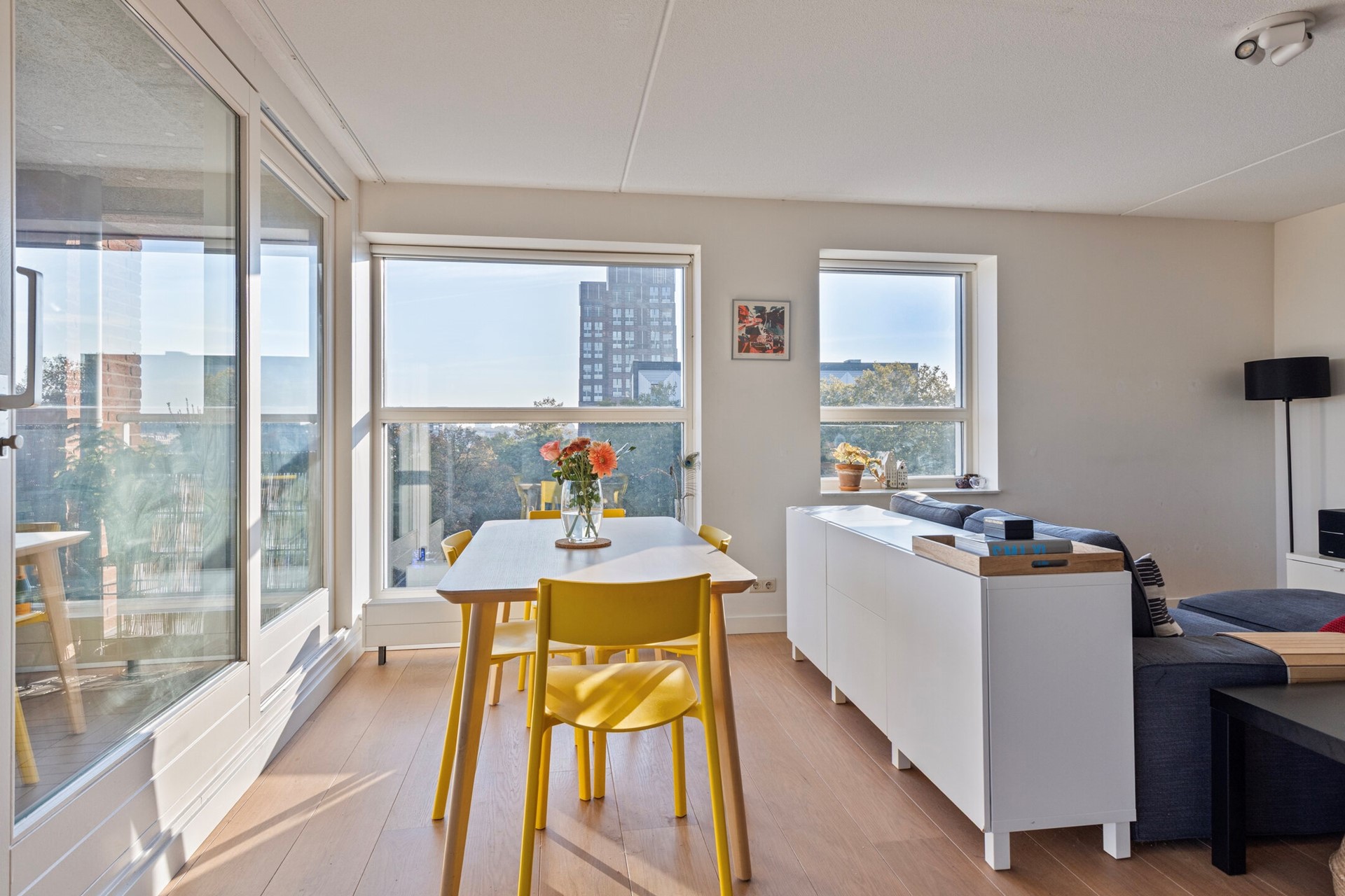 Discover this wonderful 3 room corner apartment on the fourth floor of the stylish De Admiraliteit building on the popular Geuzenkade. Thanks to its corner location and numerous windows, the apartment feels exceptionally bright and spacious. Enjoy the unobstructed panoramic views over the Westelijk Marktkanaal – both from the living room and from one of the two sunny balconies.