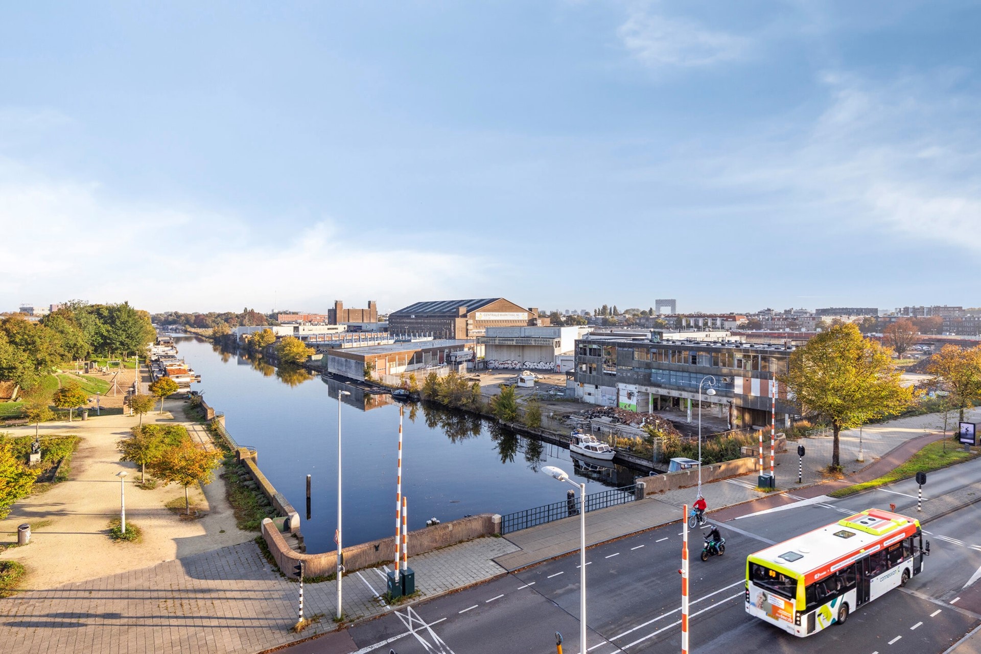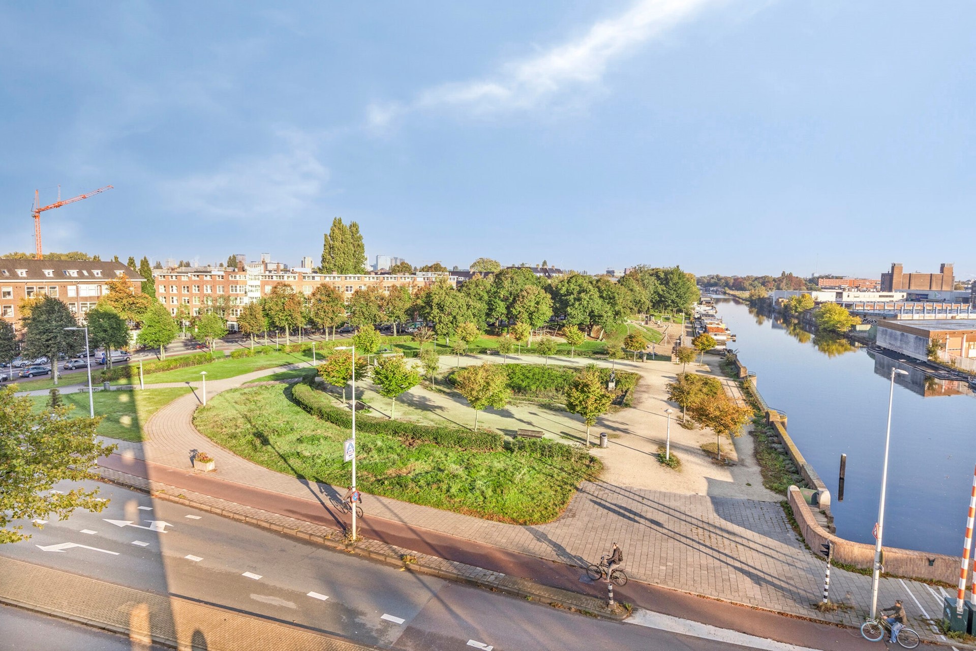 This apartment is located in the popular Baarsjes district, right on the border with Westerpark and Oud-West. Here, you can live peacefully by the water while still being just a short walk from the vibrant city life. The Jordaan, with its lively cafés and terraces, is only a ten-minute walk away, and within a few minutes by bike, you can reach Dam Square, Vondelpark, the Foodhallen, and the Ten Katemarkt.