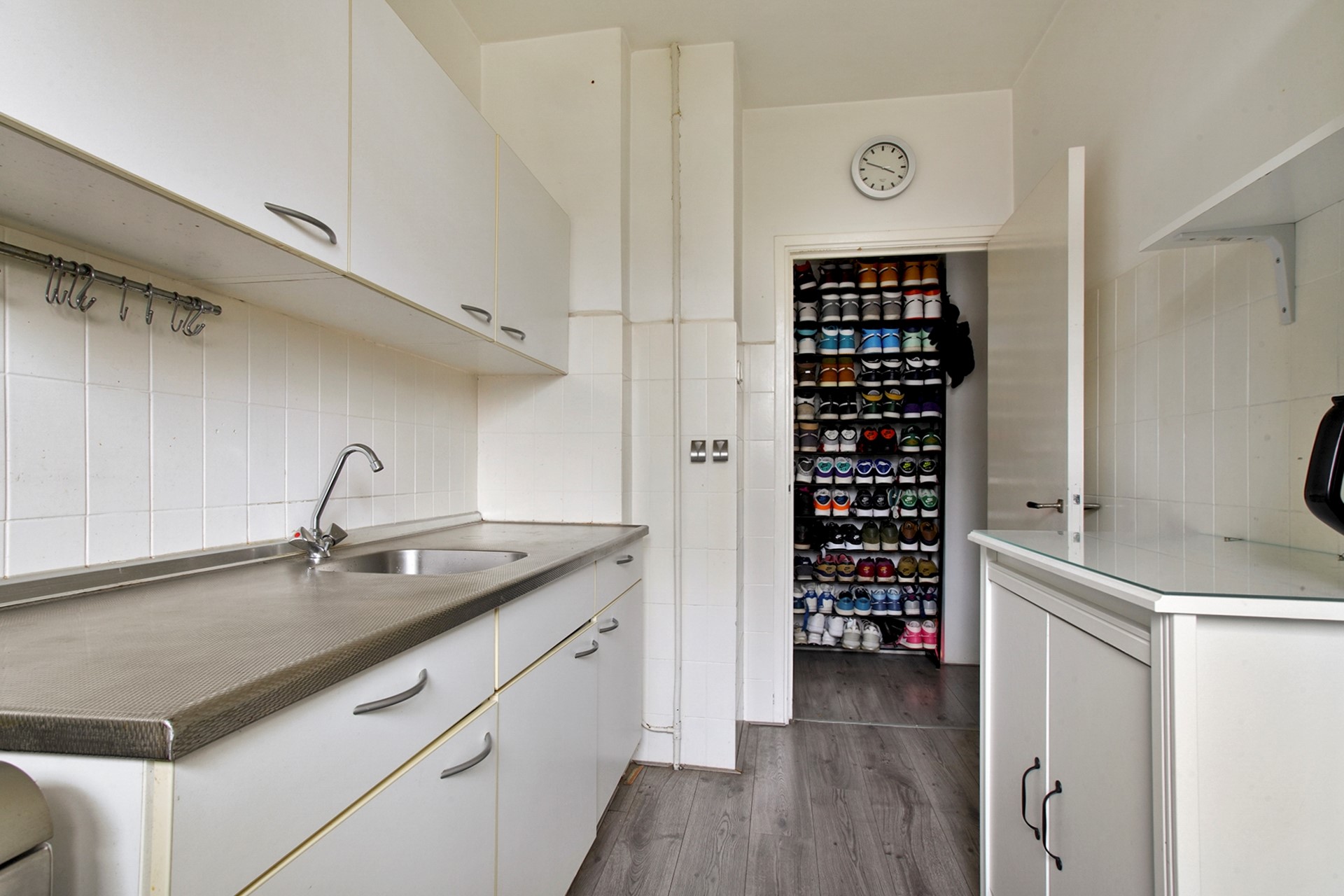 Grenzend aan de woonkamer bevindt zich de keuken. De keuken is praktisch ingedeeld en voorzien van een deur naar het balkon, waar je heerlijk buiten kunt zitten en van de zon kunt genieten.