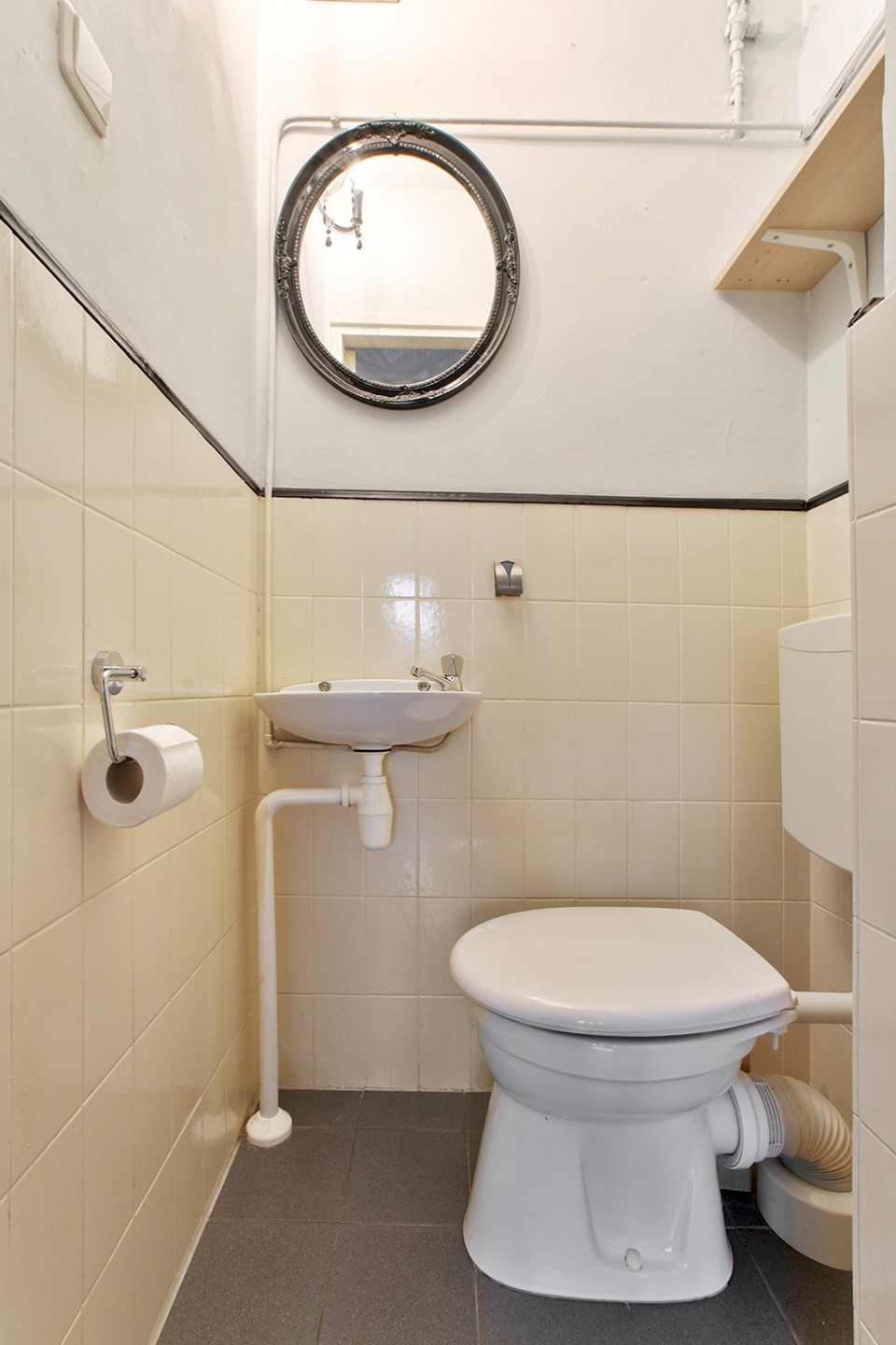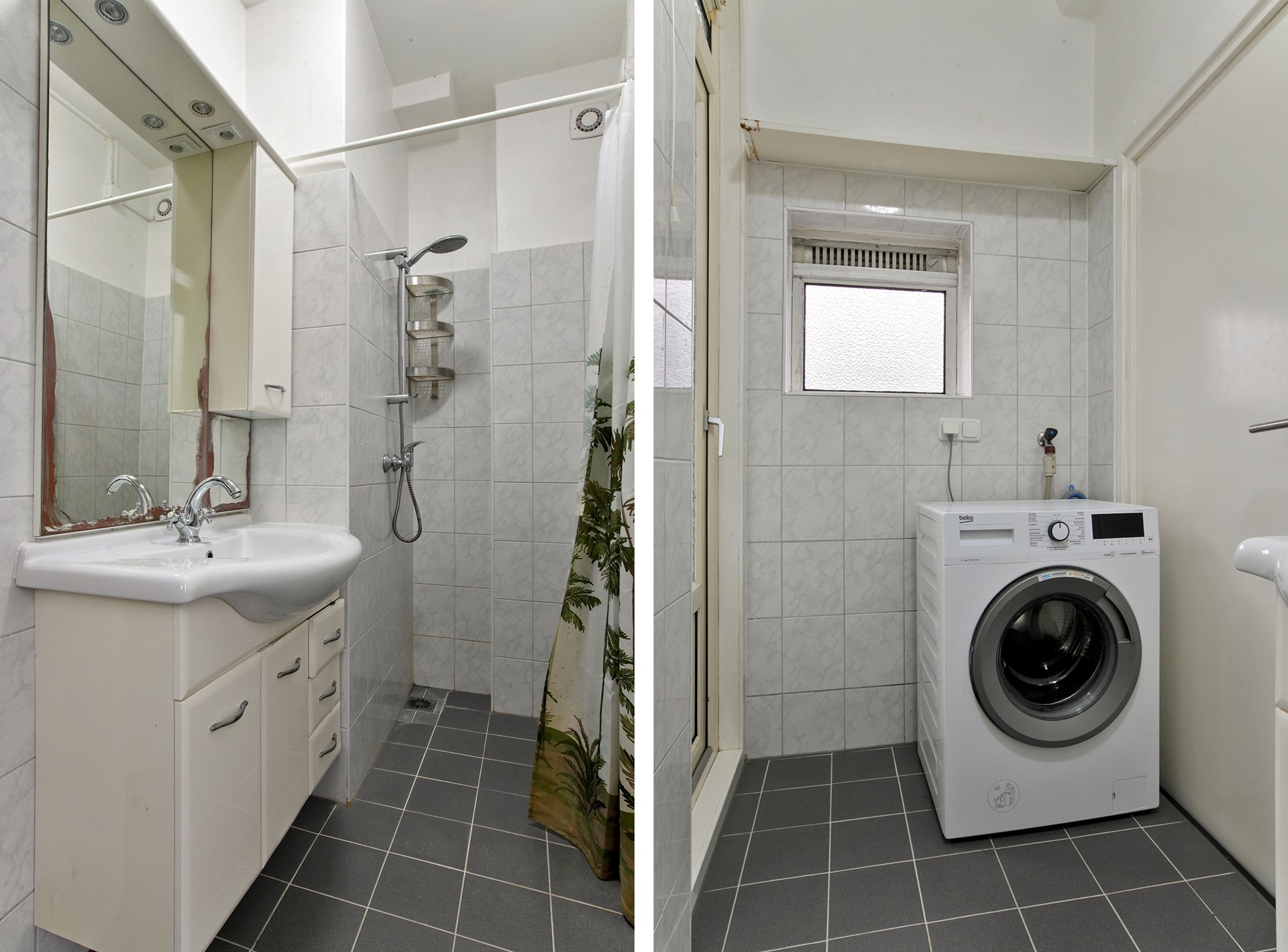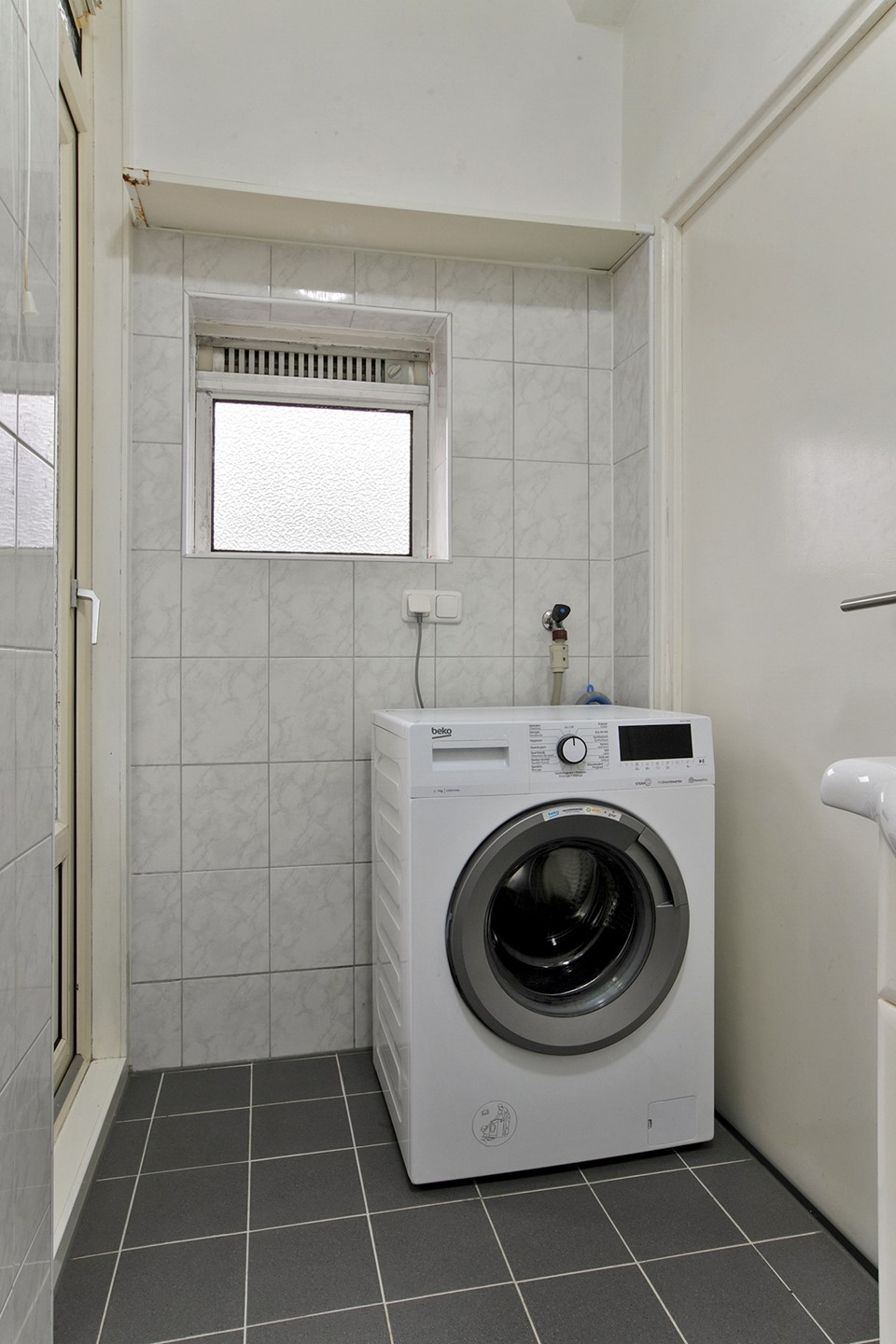 The bathroom is centrally located in the apartment and is fitted with a shower and washbasin. The toilet is separate and located next to the bathroom. In addition, the apartment has several practical built-in cupboards, providing extra storage space.