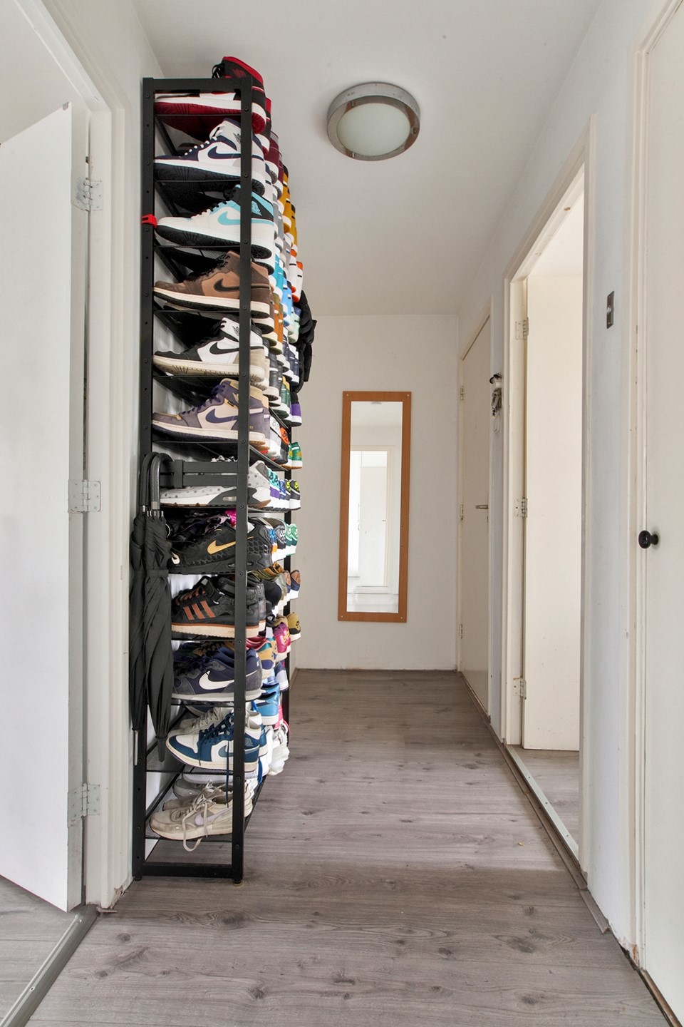 De badkamer is centraal in de woning gelegen en voorzien van een douche en wastafel. Het toilet bevindt zich separaat naast de badkamer. Daarnaast beschikt de woning over meerdere praktische inbouwkasten, wat zorgt voor extra bergruimte.