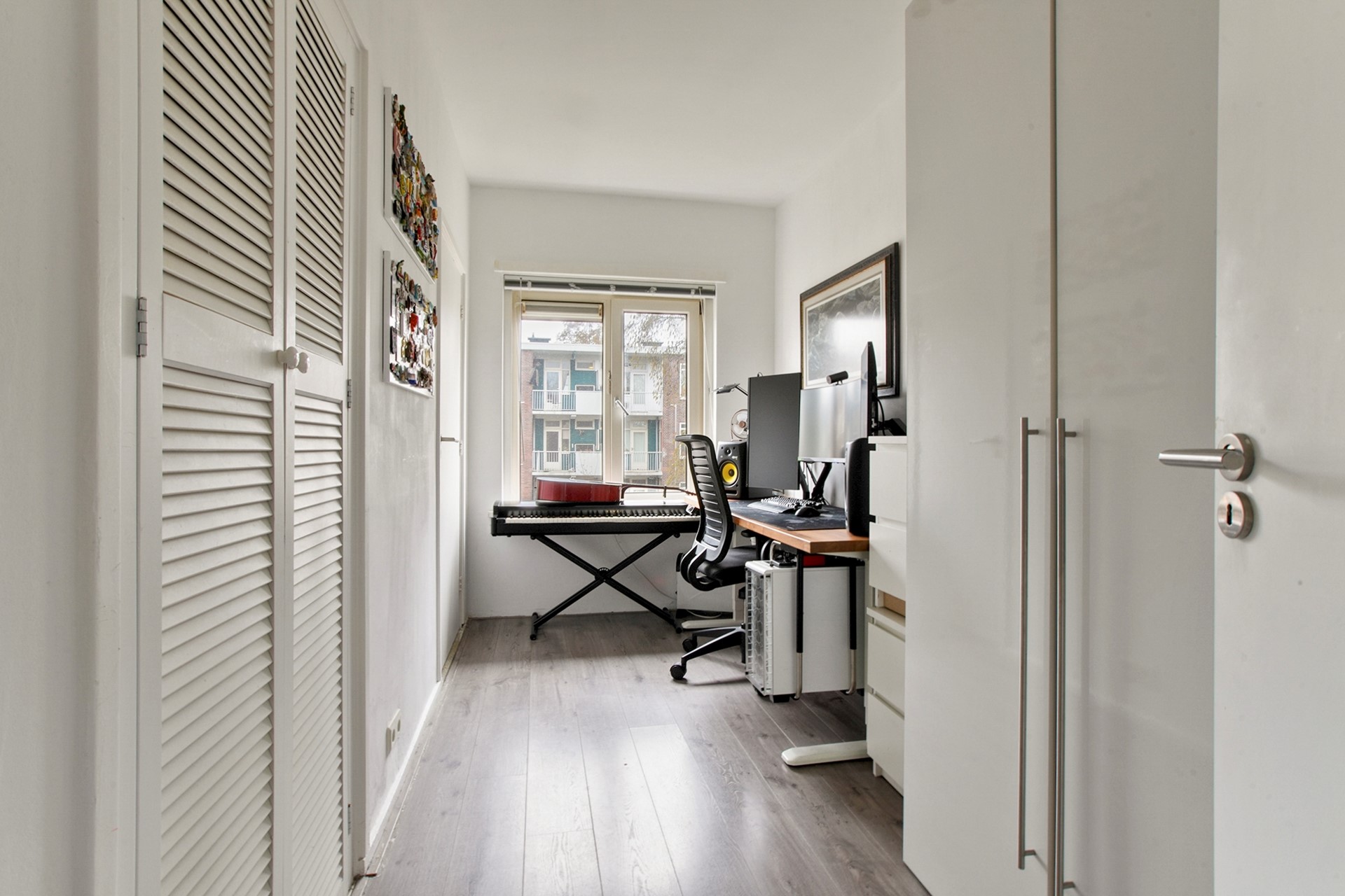 Aan de achterzijde van het appartement bevinden zich twee slaapkamers. De grootste slaapkamer beschikt over een vaste kast en directe toegang tot het tweede balkon. De tweede slaapkamer is eveneens rustig gelegen en daardoor uitstekend geschikt als slaap-, werk- of logeerkamer.