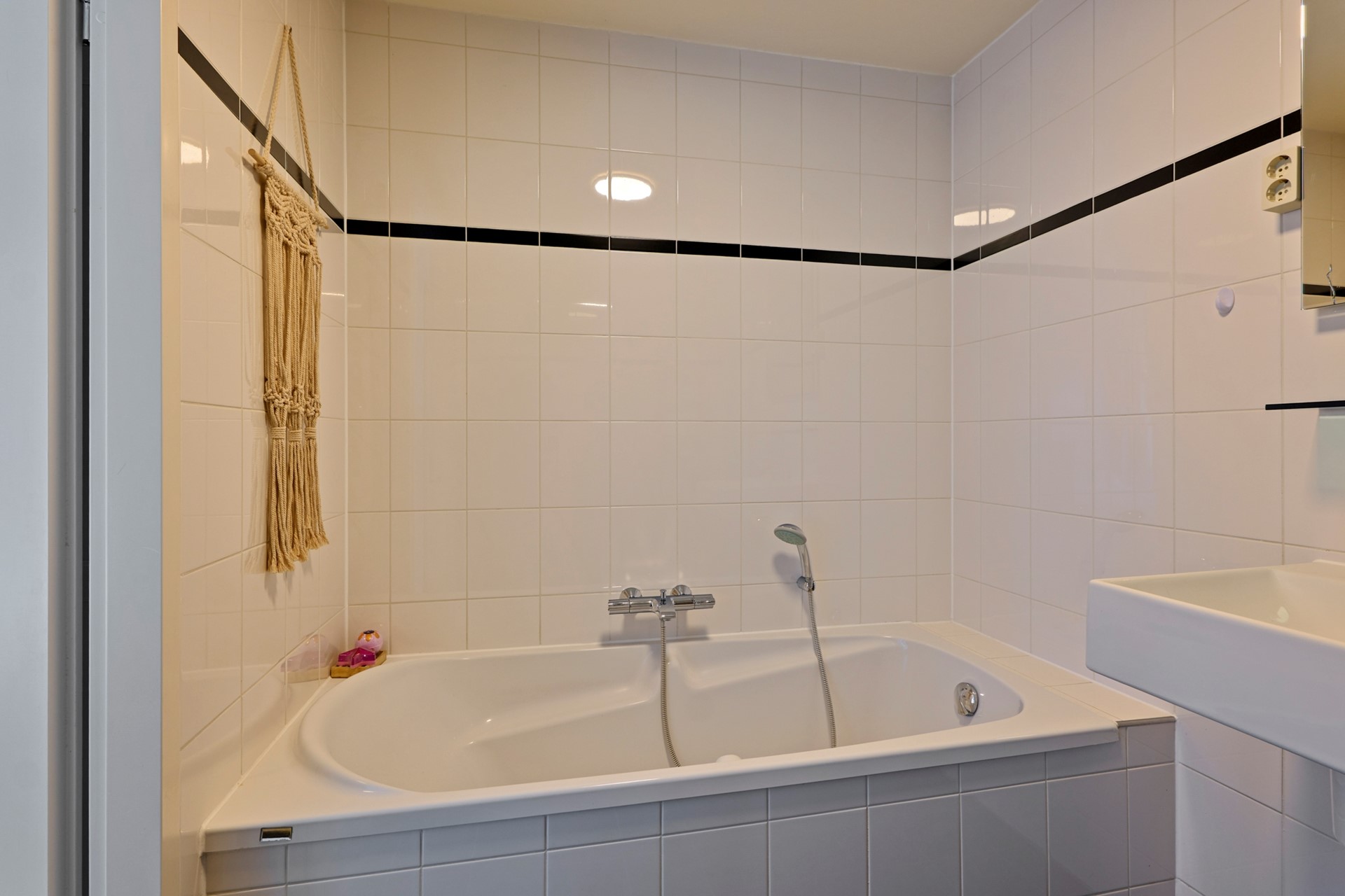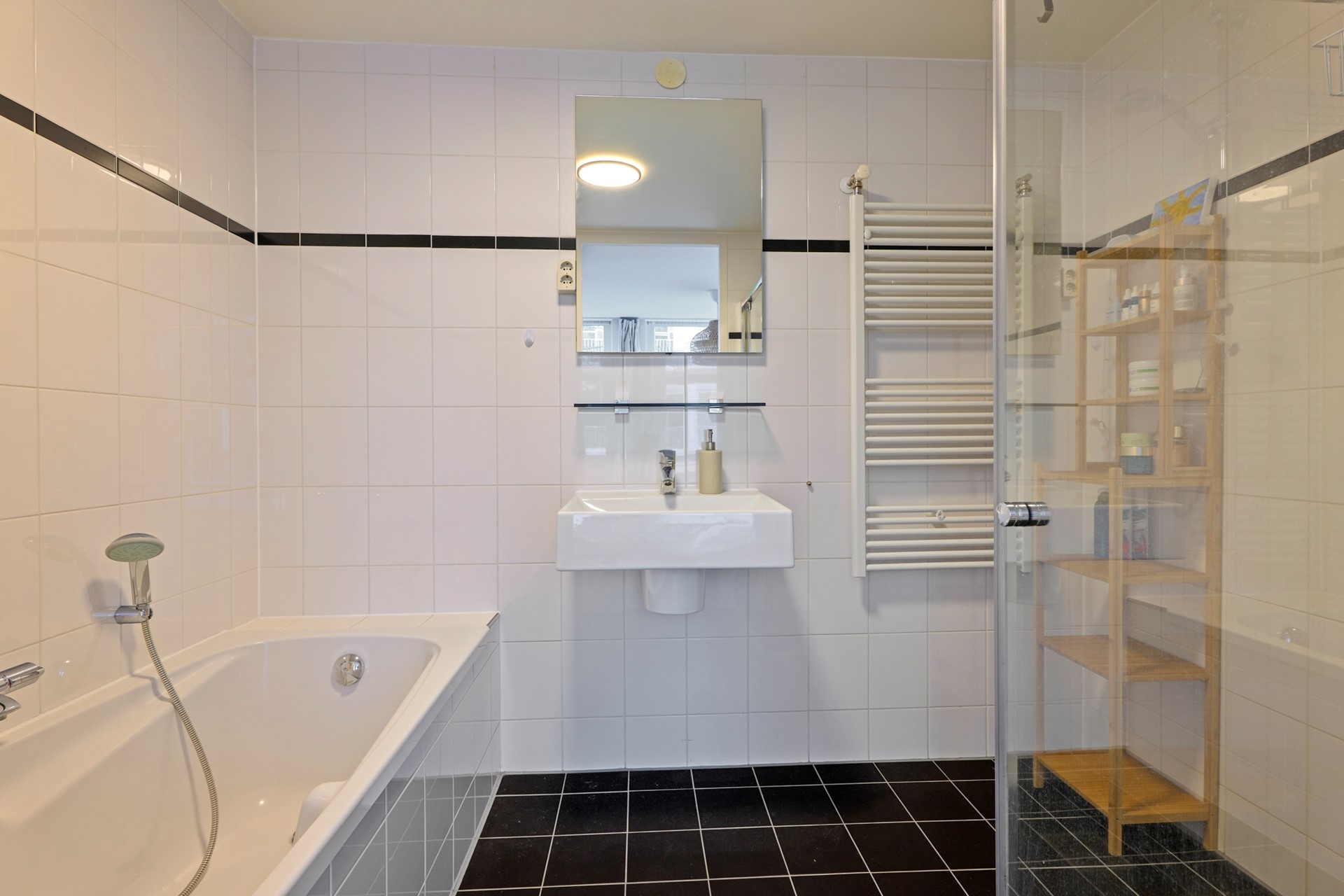 De royale slaapkamer ligt aan de voorzijde en biedt volop ruimte voor kasten en eventueel een werkplek. De aangrenzende badkamer is compleet uitgevoerd met ligbad, inloopdouche, wastafel en handdoekenradiator.