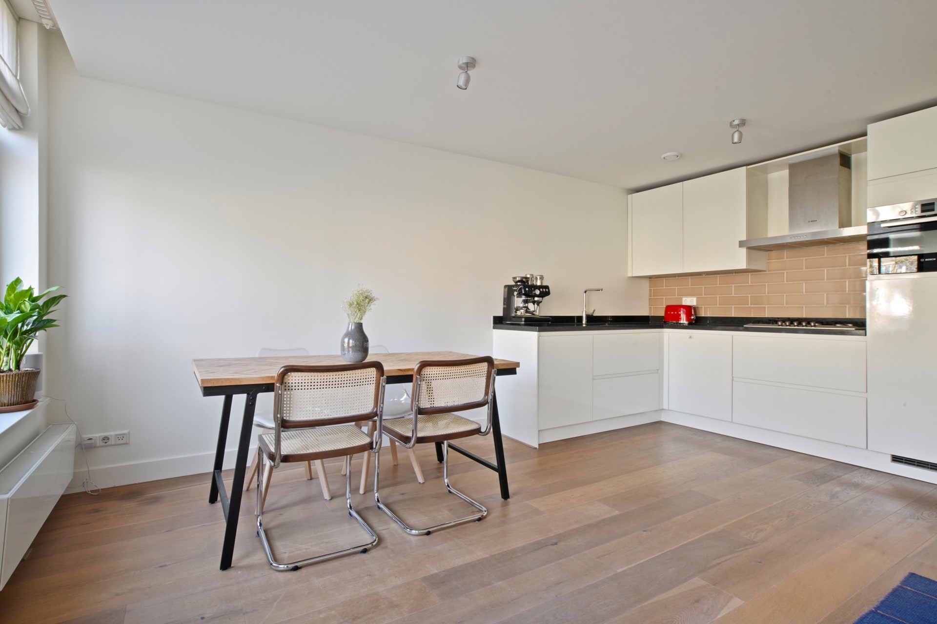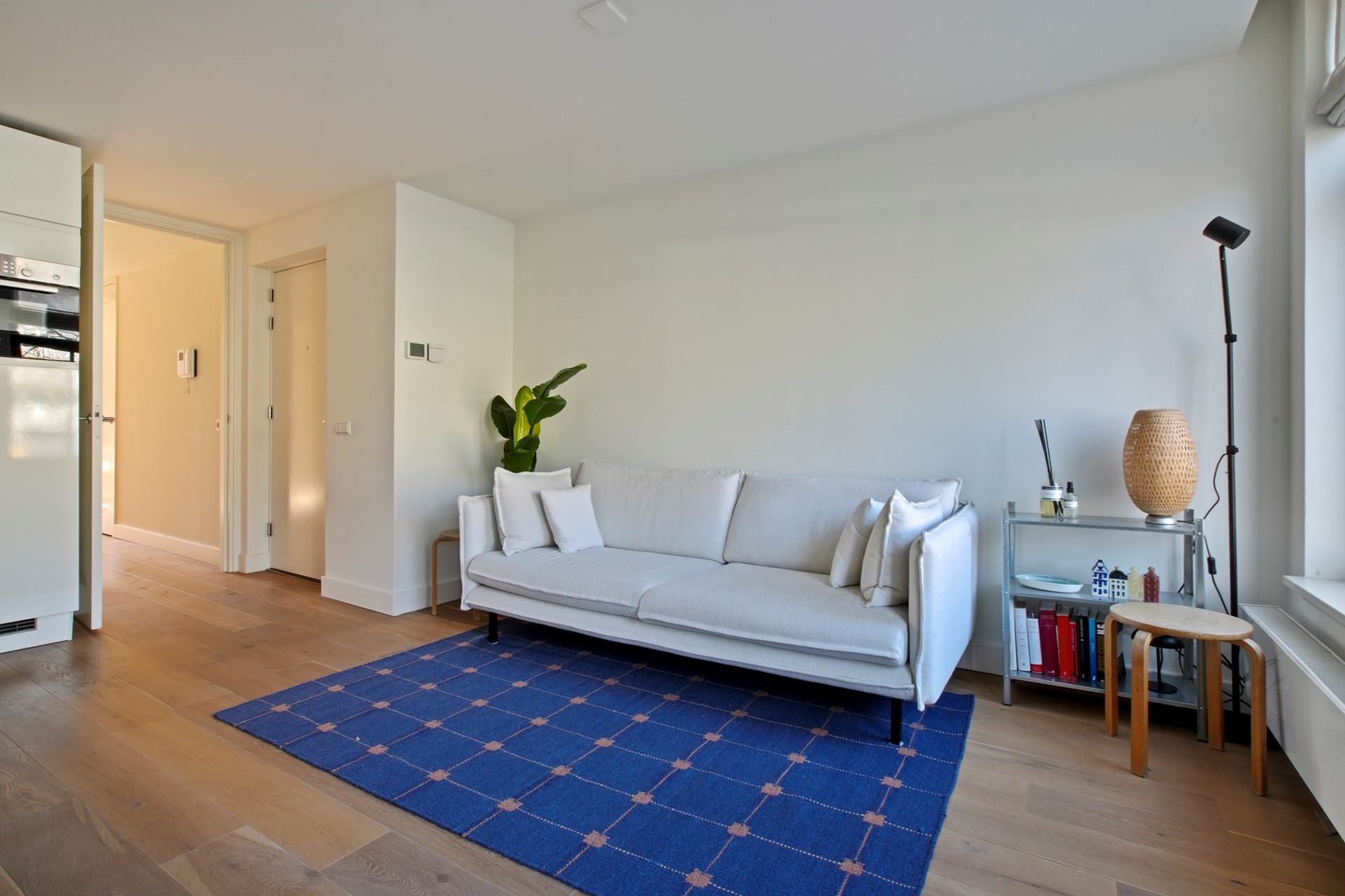 The ground floor offers access to a well-maintained communal entrance leading to the first floor. From the hallway, you enter the spacious and bright living room, featuring three large HR++ windows that allow plenty of natural light and offer a beautiful view of Wibautstraat. The modern corner kitchen is equipped with various built-in appliances.