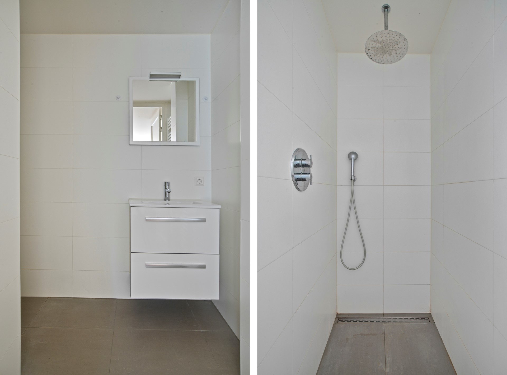 De moderne badkamer beschikt over een inloopdouche, wastafel en designradiator. Daarnaast is er een separate toiletruimte aanwezig. Handig is de extra inpandige berging met aansluiting voor een wasmachine en waar tevens de CV ketel is gesitueerd. Aan de achterzijde van het appartement bevinden zich de twee slaapkamers, beide met directe toegang tot het zonnige balkon op het zuidwesten. (circa 8m2)